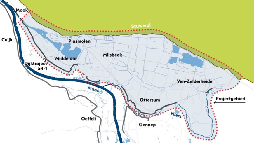 Het projectgebied Lob van Gennep ligt in Noord-Limburg tussen de dorpskernen van Mook en Gennep, binnen de gemeente Mook en Middelaar en de gemeente Gennep. Er wonen ongeveer 7.000 mensen in de dorpen Ven-Zelderheide, Ottersum, Milsbeek, Plasmolen en Middelaar. Het gebied wordt door dijken en hoge gronden beschermd tegen hoogwater uit de Maas en de Niers en ligt op de overgang van de Maasvallei naar de Bedijkte Maas.